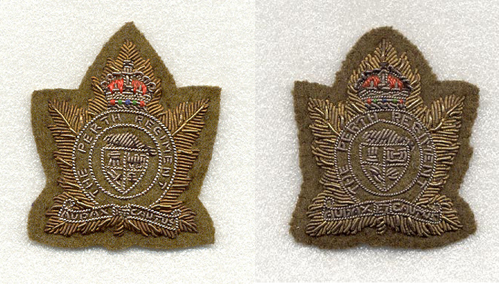 Printed canvas titles had first been issued to units in England as early as late 1943. The Perth Regiment would not receive theirs until the spring of 1945