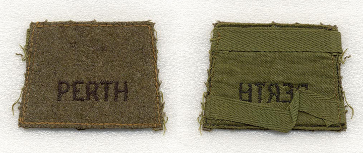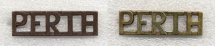 The first titles worn by the regiment during the period 1920-1948 were bronze and brass PERTH titles. The exact period for each and the reason for the two different materials are unknown.