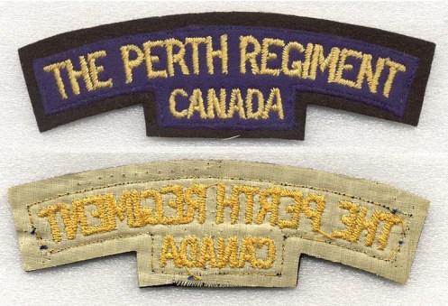 The design of the Perth Regiment’s shoulder flashes had begun almost a year earlier. On April 28th 1944 while the unit was still in Italy, a design was approved which would be the blueprint for the printed canvas title.