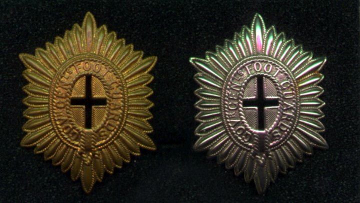 GGFG Officers’ cap badge, pierced and enamelled. Author’s collection