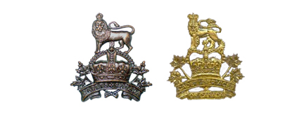 This ‘King’s Badge’ was the Royal Crest, i.e., a Crown surmounted by a lion rampant, below which was a simple scroll with the word ‘Cadets’. The Adjutant-General suggested in a letter that the King had approved the badge for use by cadets throughout the Empire. When shown to the Minister of Militia, Colonel Sam Hughes, he suggested that the badge include maple leaves in the design. These were sketched in, as well as an expanded scroll that now read “Cadets – Canada”, and the badge returned for the Minister’s approval. This unequivocally sets the date for this badge as early 1913 and that its use was for cadets and not instructors. Shortly after approval of the cap badge the Minister approved the use of a “Collar, Maple Leaf” (termed today as a General Service badge) and a ‘Canada’ shoulder title.