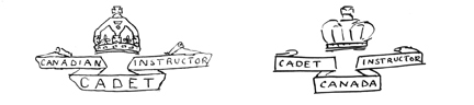 While the design of the cadet badge was under discussion, a suggestion for a variation of the badge, to be worn by CSCI officers was proposed. This badge, in two styles, differed in that the scroll included the word “Instructor”. However, the badge was not approved and CSCI officers were left to wear the approved cadet badge.