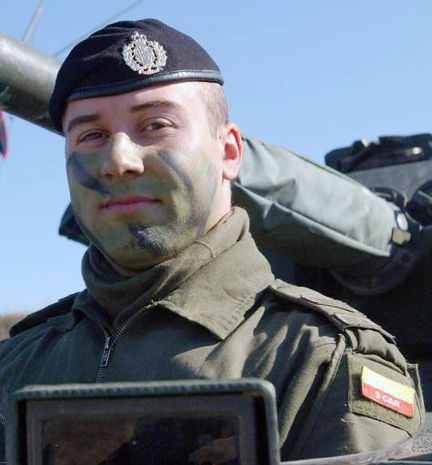 Stalwart Guardian 2003. A member of the Lorne Scots, wearing combat dress, with the 32 LIB patch on upside down. DND photo