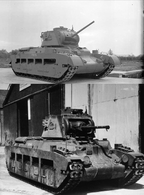 As mentioned at the end of Part 1, the Mark IIA Matilda II (powered by twin AEC diesel engines), and the Mark IIA* Matilda III (powered by twin Leyland diesel engines), could only be identified as such from the rear, by the simple fact, that the Mark IIA Matilda II had only had one exhaust pipe running down the left side of the engine deck, while the Mark IIA* Matilda III had an exhaust pipe running down each side of the engine deck. As can be seen in this photo, other then the exhaust pipe(s), both the Mark IIA Matilda II, and the Mark IIA* Matilda III were identical in appearance when viewed from the front. The top image is of a Mark IIA Matilda II (Source: IWM (KID 782)), while the bottom image, is of a Mark IIA* Matilda III (Source: IWM (MH 9264)).
