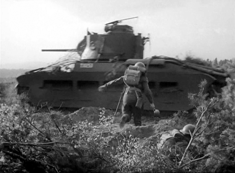 Front view of T10253, a Mark IIA* Matilda III, during a ‘Tank Hunting’ demonstration with a platoon of the 3rd Canadian Divisional Infantry Reinforcement Unit, in the vicinity of Headley, Hampshire, on 9 October 1941. Source: authors’ collection.