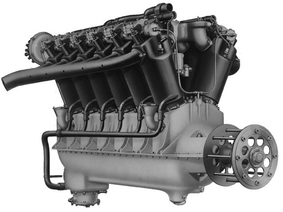 An example of the Liberty V12-cylinder 340-horsepower gasoline engine. Note the height and slimness of this engine, as compared to the flat and spread-out nature of the Meadows Flat 12-cylinder 300-horsepower engine. Source: authors’ collection.