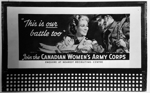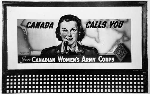 This mock up subliminally suggests that CWACs would only serve in Canada. The use of the model as a telephone operator would comfort many potential volunteers, and their parents, who saw this occupation as one that was suitable for women. Volunteers under the age of 21 required parental approval prior to enrolling.