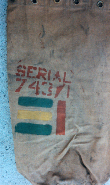 Another example of a unit serial number applied to a soldier’s kit, as a means of identifying his parent unit can be seen in the following image of a kit bag. In this case, the unit serial number ‘743’ of Le Regiment de la Chaudiere as been neatly stenciled onto the bag, with the corresponding three horizontal bars of the coloured bar code system (taken into use in the spring of 1943), applied directly below, thus identifying the kit bag owner as a member of Le Regiment de la Chaudiere. As a point of interest, Private J.C. Cournoyer, whose name and initials appear applied below his regimental number (E9138), near the bottom of the bag, transferred to the Royal 22e Regiment, and while serving in Italy was killed in action in December 1943. Also, the difference in the application of just the unit serial number ‘743,’ on Private Cournoyer’s kitbag, as opposed to the unit mobilization serial number ‘743/1,’ on the kit bag mentioned earlier, is that, Cournoyer’s bears the initial application from the spring of 1943. That of the earlier mentioned kit bag, with the application of the unit mobilization serial number ‘743/1,’ was applied sometime later, perhaps to the kit bag of a new member of the unit, as Le Regiment de la Chaudiere completed their preparations for the allied invasion of Normandy in June 1944.
